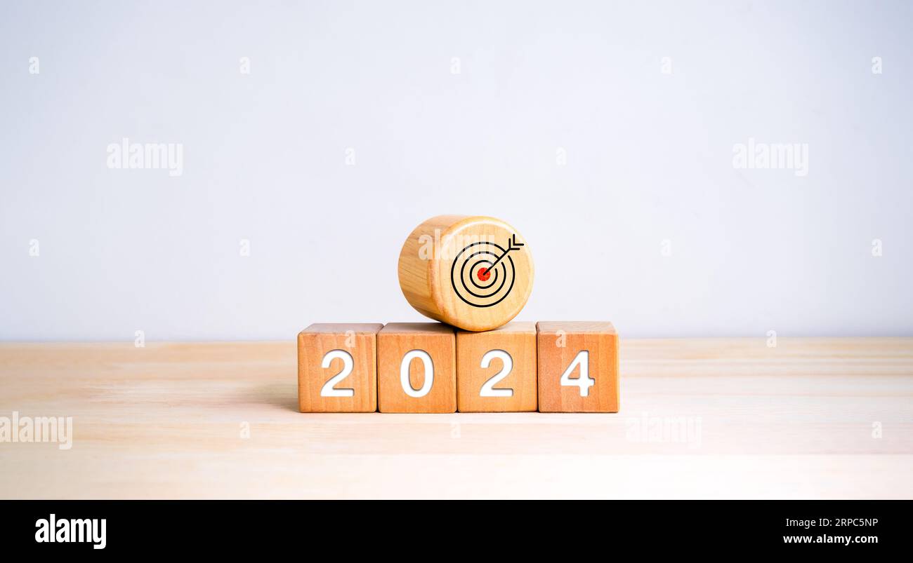 Happy 2024 calendar year with goal and success concepts. Big wood